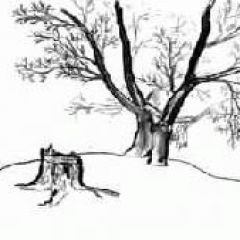 Поднимает голову и видит, что это веревка, натянутая меж веток дерева, на которой висят рядком штук двадцать палок.