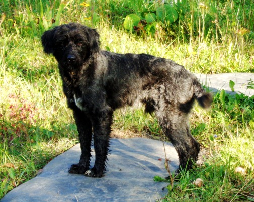 В будке его огромного алабая внезапно появился щенок. Откуда он пришел, как проник через забор и поселился в этой будке, осталось для нас тайной. Просто однажды он приехал домой и увидел во дворе клубок чёрной шерсти с блестящими черными глазами. Иногда, сидя на крыльце, он наблюдал за этим катающимся за его огромным псом клубком, надеясь, что его будут искать или он уйдет сам, но, по-видимому, клубок решил, что здесь кормежки хватит и на него и решил тут задержаться.
