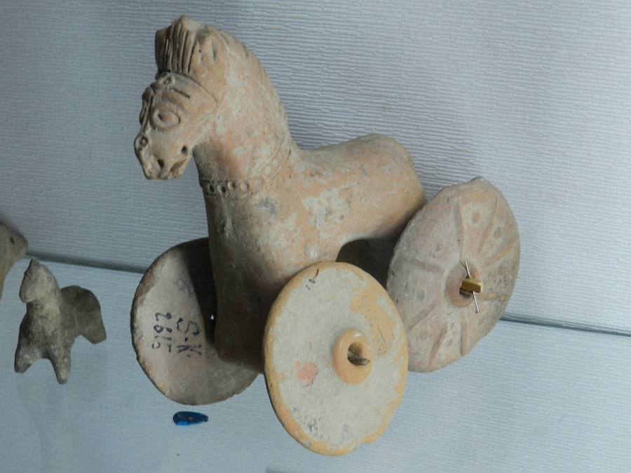 Невольно улыбаешься, рассматривая примитивные игрушки. Дети Таксилы играли фигурками животных, дудели в свистульку и были счастливы. Глядя на колёсную лошадку вспоминается, как греки с помощью хитрости взяли Трою.