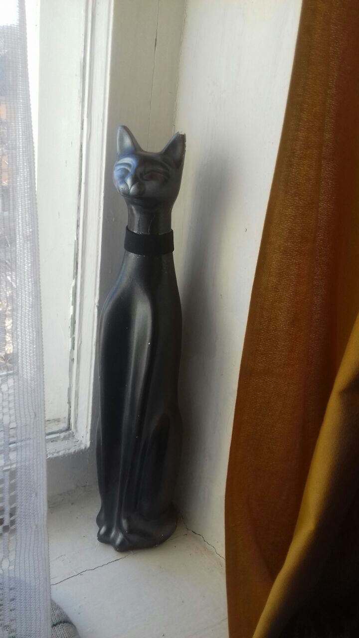 Я заметила, что кто-то поставил в углу у помойки... Прекрасный сувенир. Статуэтку чёрной кошки. О!..