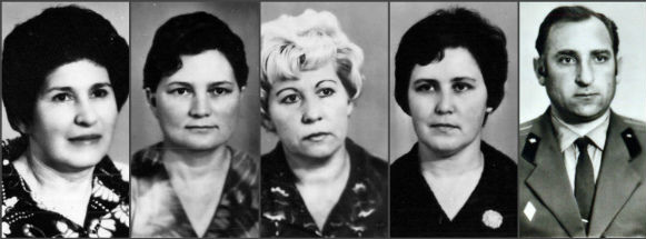 см.Фото:слева направо-директор Сергейчик Т.Е; 2.завуч Гаврилюк Л.М.; 3.руководительница нашей группы Орехова А.Г; 4.преподаватель физики Лазарчук М.П.;5.военрук Сумко Я.А.