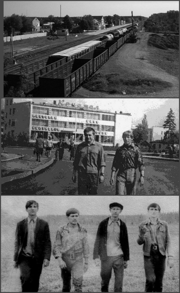 см. Фото: Сверху вниз. 1.Рампа.2.И.Шикило и В. Улитко на фоне ресторана(и столовой, и буфета) " Кристалл". 3.Бригада " кому -нести-чего-куда".
