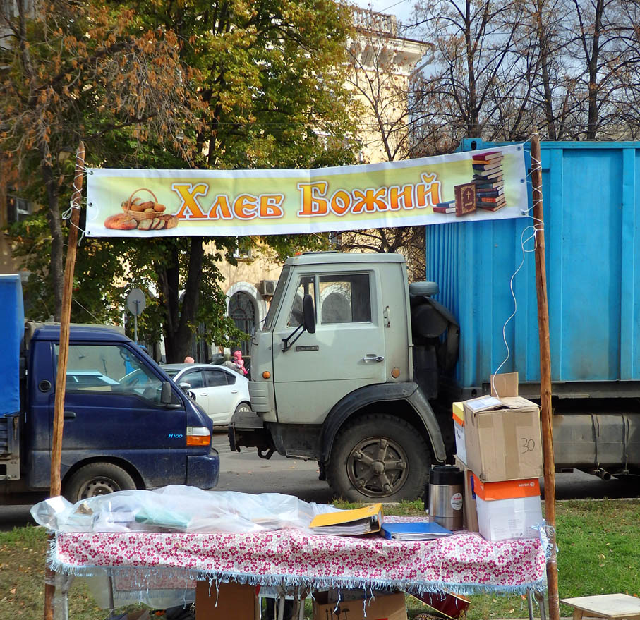 - Вообще-то я рассчитывал, что люди будут останавливаться, услышав мои кричалки. Если завязался бы диалог, можно было отойти в сторонку, рассказать о Боге поподробней. Или другой вариант – заинтересуются книгами, начнут искать Бога…Я собирался всем, кто купит хоть одну книгу, дарить Новый Завет с миссионерской брошюркой и адресом храма. Просто так не дарить, как на православной ярмарке, чтобы не потерялась их ценность. Сама понимаешь, народ здесь не такой подготовленный, как там… Но я никак не предполагал, что люди со скоростью молнии будут пролетать мимо.