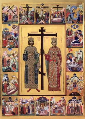 Святой император Константин (306-337), получивший от Церкви именование Равноапостольный, а во всемирной истории наименованный Великим, был сыном цезаря Констанция Хлора (305-306), правившего странами Галлией и Британией. Огромная Римская империя была в то время разделена на Западную и Восточную, во главе которых находились два самостоятельных императора, имевшие соправителей, одним из которых в Западной половине и был отец императора Константина. Святая царица