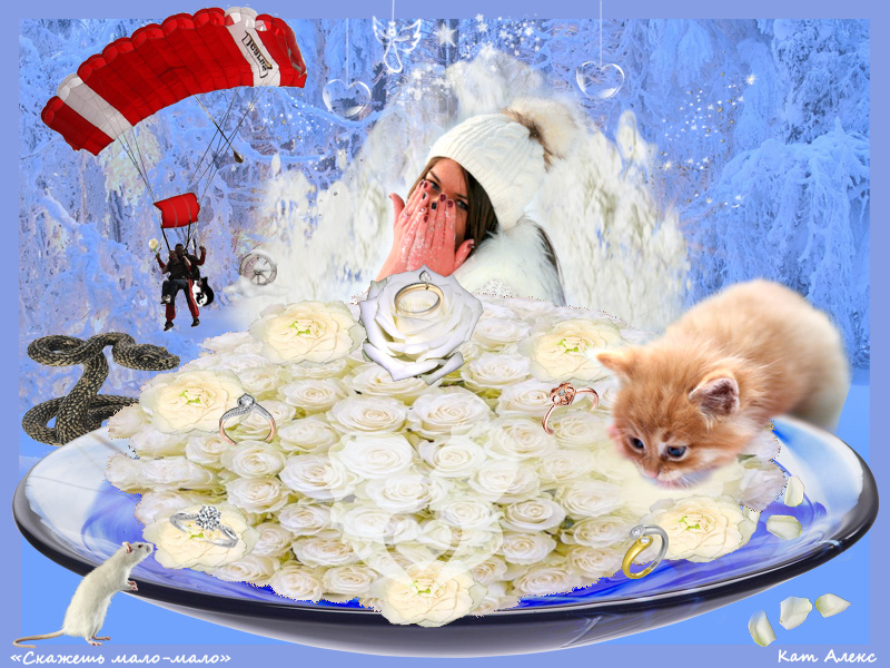 Весело! Сказочно!Жаль,что я не смогу быть "белой мышкой, рыжим котёнком или тонким колечком..." потому, что я - "Ревнивица" и спутник есть у меня...