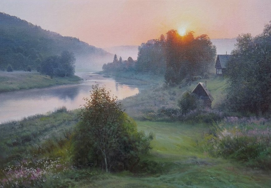 Вдруг, блеснул свет!.. Прибрежная осока зашелестела от набежавшего ветерка, и, квакнув, в воду бултыхнулись лягушки! Белёсый, как разбавленное молоко, туман стал таять почти на глазах; и со всех сторон засвистело, защебетало и захлопало крыльями бессчётное множество ещё невидимых птиц!.. Когда я догнала бабулю, небо было уже чисто, а макушки деревьев, торчащие из-за холма за рекой, горели позолотой.