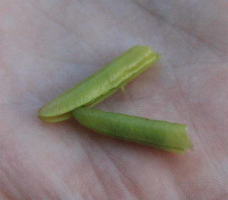 Поэтому сегодня я научила детей делать свистульки из акации. В моём детстве, когда отцветала жёлтая акация, то появлялись плоды, похожие на стручки гороха, из которых мы с друзьями делали свистульки. Тут начиналось целое веселье,устраивались соревнования, чья свистулька громче и дольше издаёт звук. Для изготовления свистульки потребуется зрелый стручок, в меру мягкий, без изъянов. Надо аккуратно ногтём открыть с одной стороны стручок, счистить горошины так, чтобы внутри стручка было чисто и гладко. Более острый конец равномерно обломать с двух сторон. Если, не удалось раскрыть только одну сторону, а стручок распался на две половинки, то совместить так две стороны, чтобы они полностью прилегали друг к другу. Зажать плотно губами стручок во рту, стараясь вдуть в него воздух, а обломанная часть, наоборот, должна торчать изо рта. Вот и все премудрости,потренировался и вперёд - покорять художественным свистом окружающих!