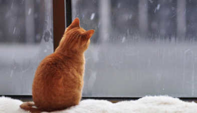 На окошке котенок ловит лапкой мечту,