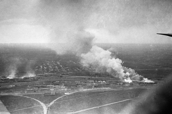 Днем штурмовыми действиями уничтожали войска и технику противника перед фронтом 37-й армии, прикрывали свои войска на переправах и вели разведку пор плану разведывательного отдела.