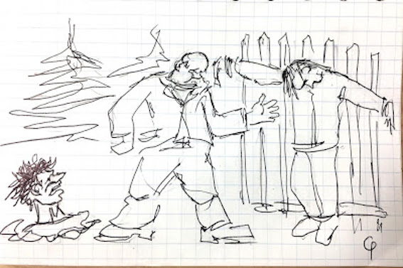 Над закопанным нависал привязанный к штакетнику забора Иван. Его раскинутые руки были прикручены проволокой к верхней перекладине, а ноги к нижней. Картина что-то напоминала.