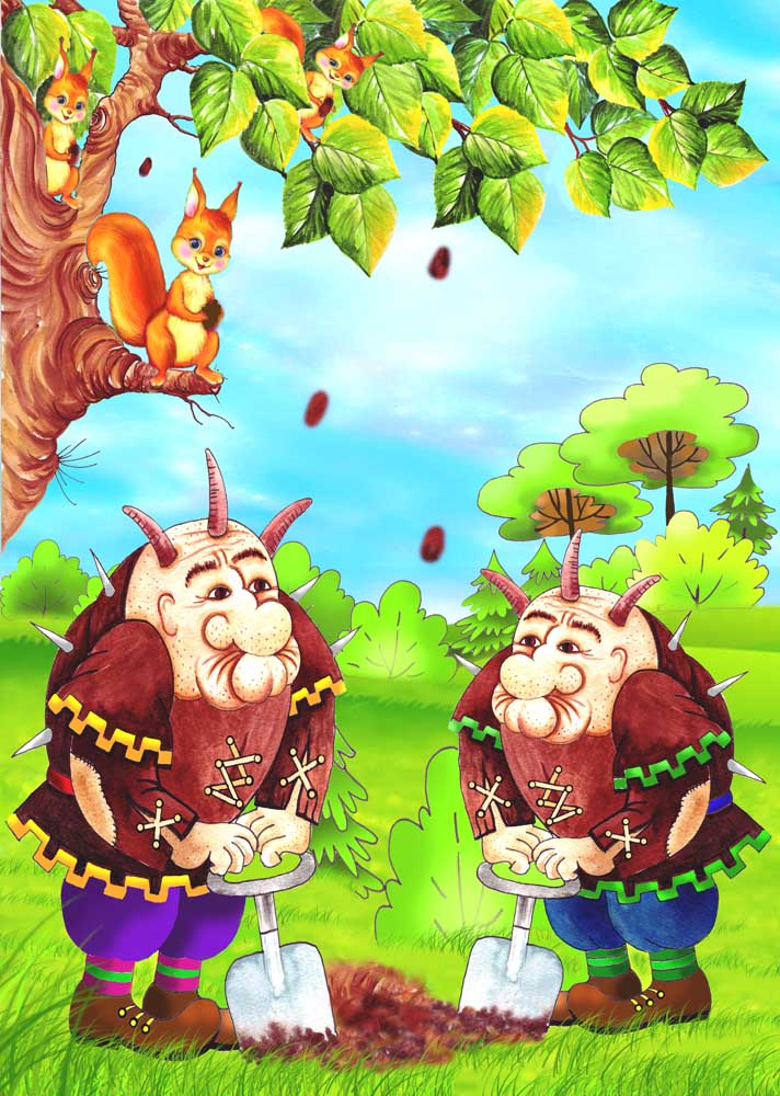Они вошли в дом. А весёлые белочки, хихикая, пошли к норе Крота рассказать ему о своей атаке на кмирчей.