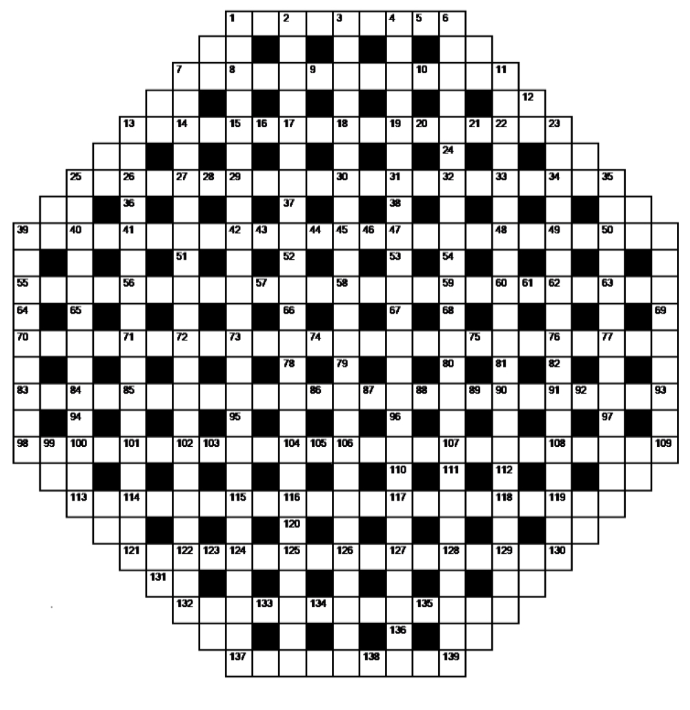 Форма, на наш взгляд, соответствует содержанию. Здесь двадцать пять строк и столько же столбцов неодинаковой длины и высоты. Все нечётные строки и столбцы представляют собой сплошные цепочки по принципу чайнворда.
