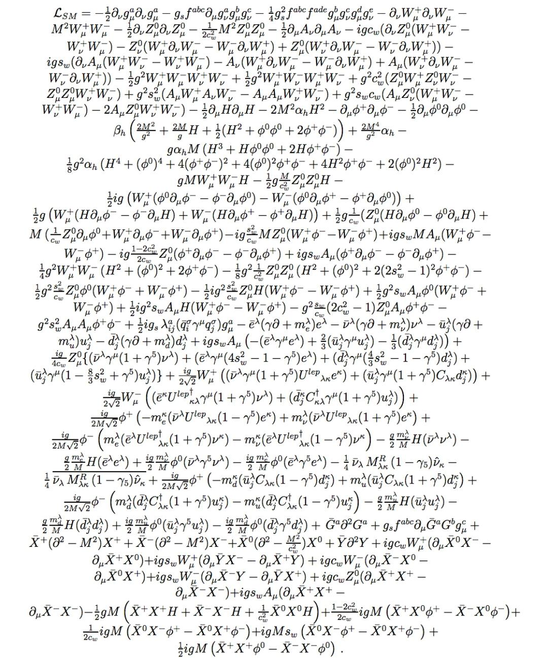 На картинке Лагранжиан Стандартной Модели в самом общем виде на настоящее время.