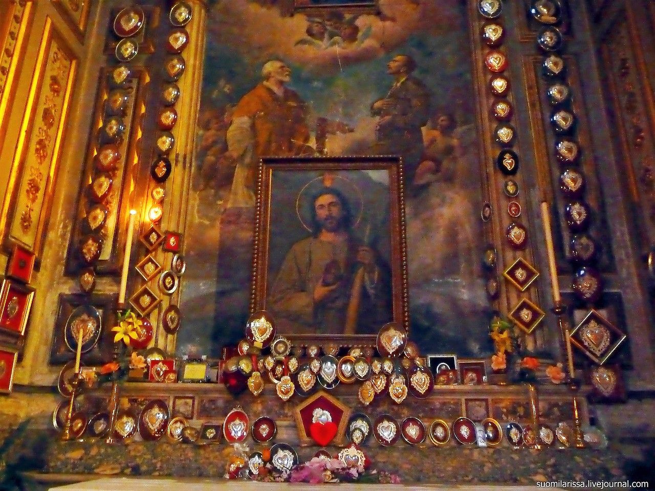 В капелле церкви Santi Vincenzo e Anastasio — похоронены 25 сердец Римских Пап.
