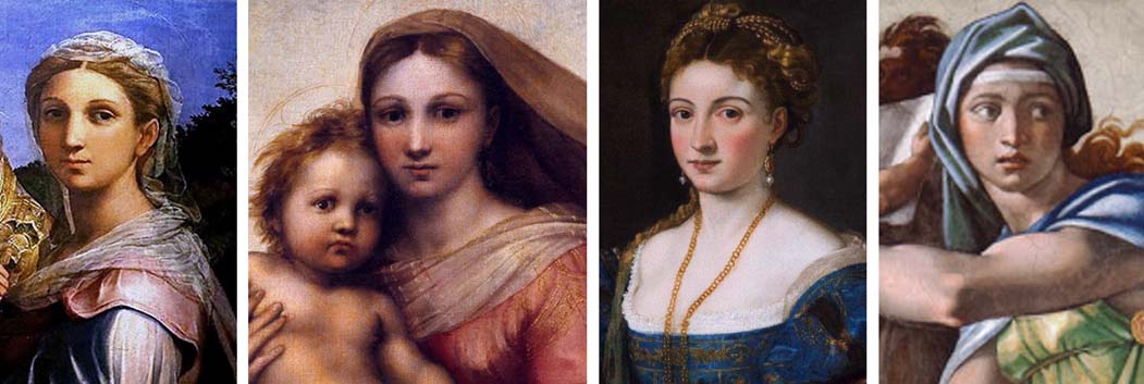 На фото – фрагменты картин Рафаэля, Тициана, Микеланджело…