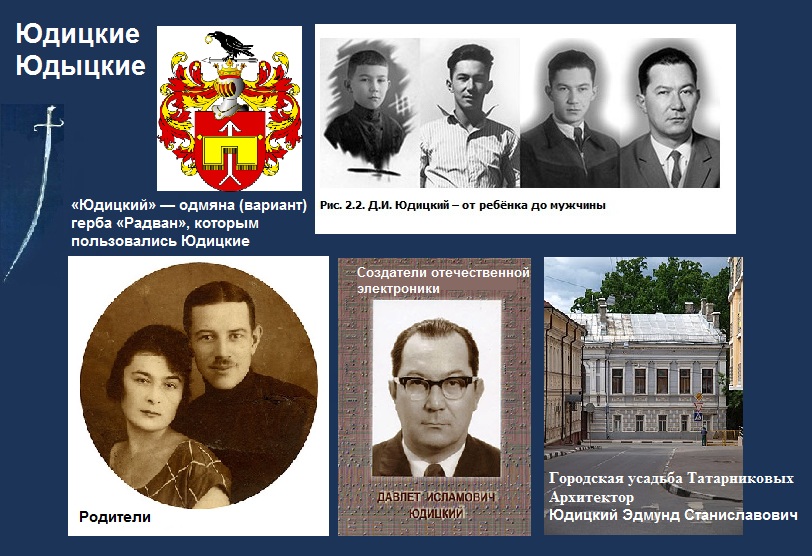 Корни фамилии по всей вероятности имеют нетатарские истоки, хотя и это требует тщательного исследования. История Давлета Исламовича Юдицкого достойна театрального или кино воплощения.