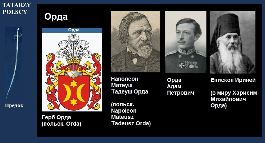 Отец Наполеона, инженер-фортификатор Михаил Орда, происходил из обедневшего татарского рода, предки которого в XIV веке во времена правления Великого князя литовского Витовта переселились из Золотой Орды и честным служением новой Родине заслужили признание и уже в XVIII веке были достаточно состоятельными шляхтичами.[2][3]