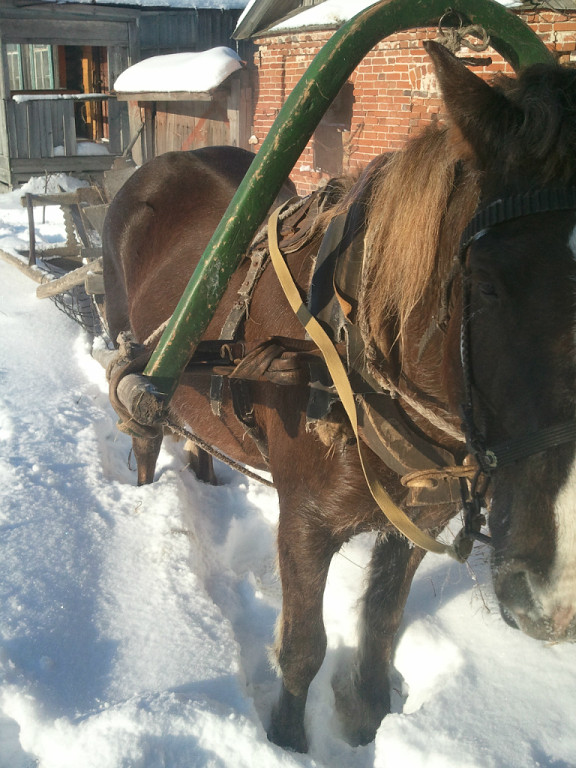 А Фекла, между тем, уже подъезжала к дому, на санях стояла огромных размеров кошелка, вот в этой кошёлке, вся закутанная, как капустный вилок, и сидела Фёкла. Тимофей Романович, Грунин свекор, привязал лошадь за частокол в палисаднике и помог глупой бабе выползти из кошелки.