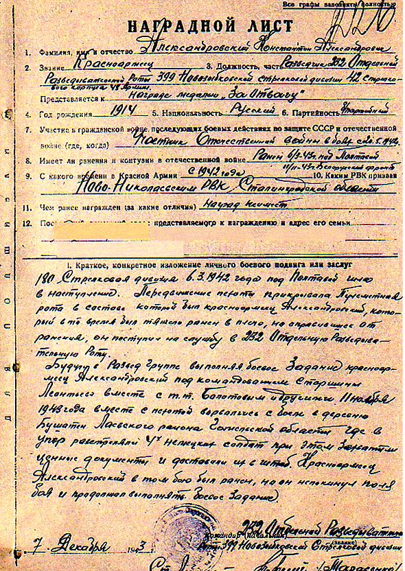 Подвиг и наградной лист отца