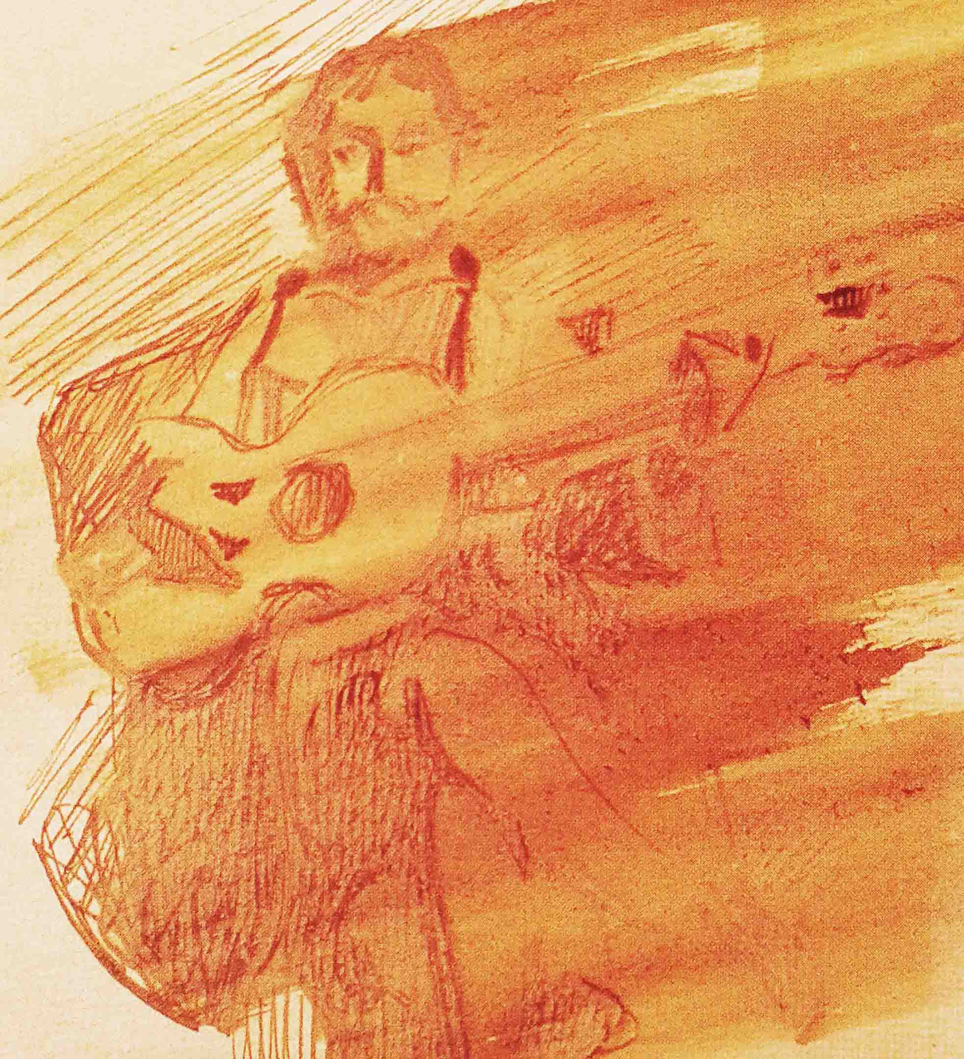 на фото – автопортрет Врубеля с гитарой, эскиз из киевского альбома, 1885 г.