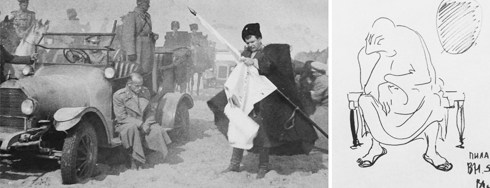 На фото – кадр из фильма «Бег» и рисунок В. Наумова «Пилат», где главные герои удивительно похожи в своей Великой Трагедии…