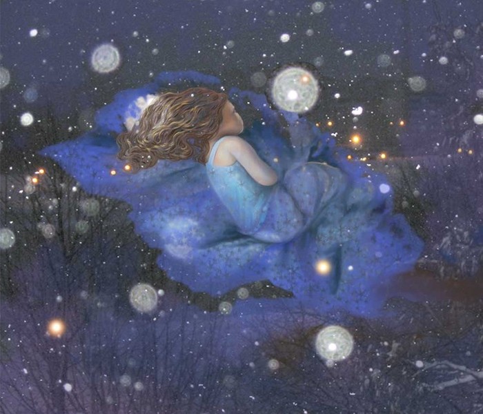 В детстве я почти каждую ночь летала. Летала в ночной, иссиня-черного бархата, бесконечной дали неба, подсвеченного переливами лунного света. Покой в невесомости был неописуемым истинным счастьем. И вместе со мной летали звёзды. Летали и падали. Падали и гасли…, но я ловила их сачком, а они всё равно гасли и чёрные угольки сгоревших планет быстро заполняли его. Сачок становился тяжёлым, звёзд на небе оставалось всё меньше и меньше, и я в кромешной темноте чужого мира, не зная куда мне лететь дальше, начинала громко звать маму. Я не понимала, где находится земля и паника, до паралича, охватывала меня. Мама прибегала и голос ласковый успокаивал, а я, всхлипывая, причитала, что на небе погасли всё звёзды. Мне было очень страшно. Она укутывала меня в большой, как одеяло пуховый платок и выносила на крыльцо.