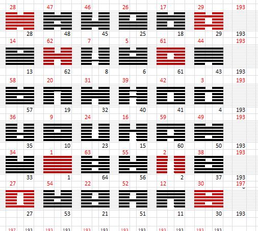 На данный момент, это реальное совершенство в моих исследованиях матриц из гексаграмм И Цзина в порядке Вэнь Вэя.