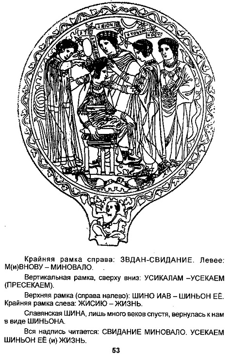 31 Рис.53/ - Знания приносят Учителя в эту пору развития мирского – наук разных постулаты, что уводили нас от Бога и Первоистоков. (Образ зеркальца над головой, - как напоминание о текстах чтения. Вспомни «Сказку о спящей царевне и 7 богатырях» - Пушкина – Кто на свете всех милее?..)