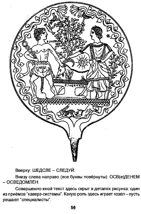 33 Рис.56/ - Науки новые в миру. В генетику вторгаться стали (- Образ ДНК спирали в руке мужа слева) Козла образ – аллегория пороков низких в духовном росте в искаженных устремлениях в миру с Ди/Я/волом в умище. А под опорой, на чём стоят образы людей – Тигро-заяц мутированный, за ним такой же Пёс. Нас искушает в Росте Древа познания «змий искуситель» - образ слева.