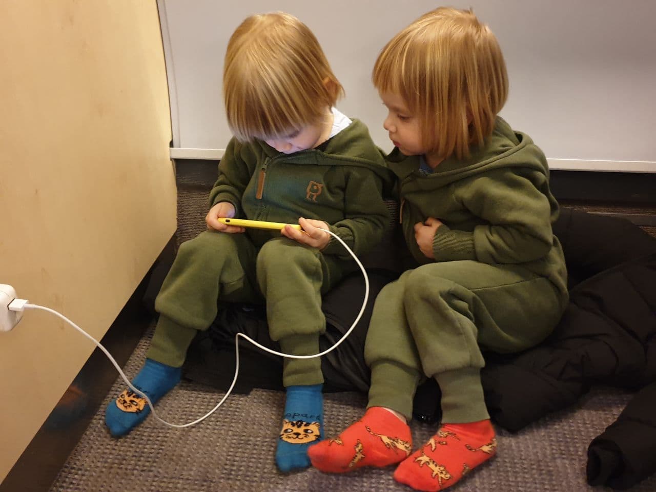Под конец поездки женщина обеспечила всем минут двадцать покоя, выдав детям телефон с мультиками на детском ютьюбе, для чего надо было вставить разряжающееся устройство в розетку и усадить детей рядом на курточки, разложенные прямо на полу.