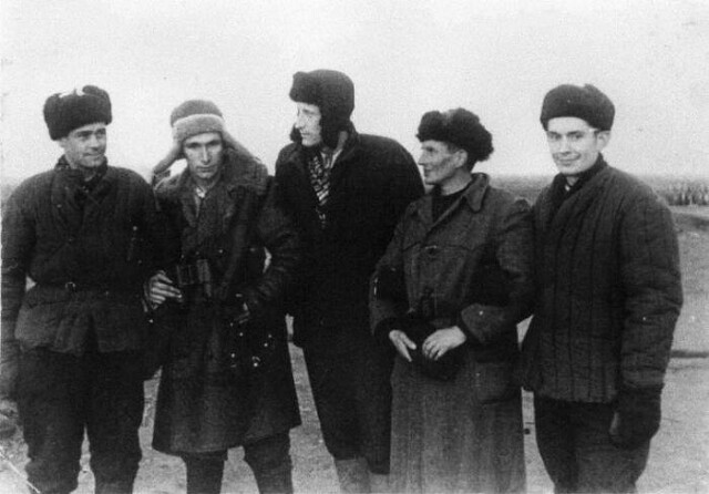 Старые фото. 1947 год. Создатели ракеты А-4 на полигоне Капустин Яр после ее удачного запуска. Простые русские мужики в телогрейках. Творцы и созидатели! )
