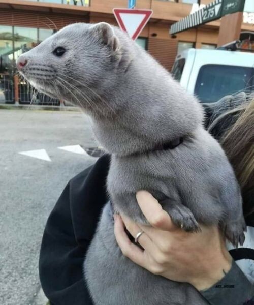 Это голубая норка. Очень умное, красивое и самое чистоплотное в мире животное! С кошками и собаками неконфликтна, молчалива, но держится с поистине королевским достоинством! Любит сидеть на руках и на плече....