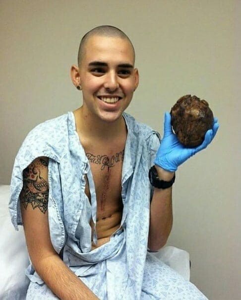 Картинка конечно несколько жутковатая и фантасмагоричная! После пересадки сердца от донора, пациент держит в руках своё старое пришедшее в негодность больное сердце, хранившееся по его просьбе в холодильнике....