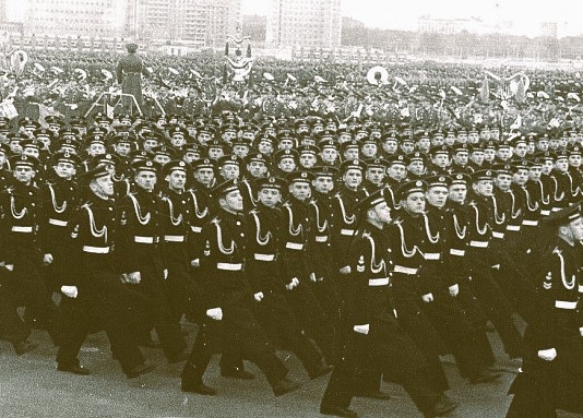 Мы все перемешаны в стройных шеренгах. Какой класс, какая рота, какой офицер-воспитатель – нам уже неважно. Важно, что мы в одном строю, и чётко печатаем шаг по древним булыжникам Красной Площади. Одним глазом ловишь грудь четвёртого в строю, другим – Леонида Ильича, Политбюро и Маршалов СССР на Мавзолее. Шеренги ровные, диагональ просматривается.