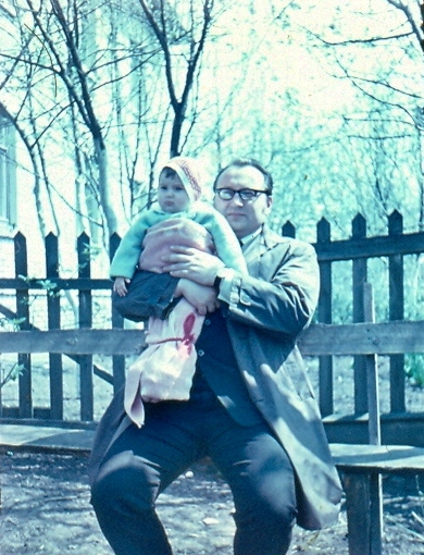 Папа с доцей в Кагарлыке. Танюшке 10 месяцев.