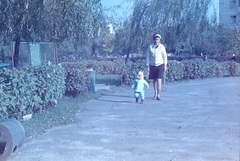 К лету Танюша научилась топать по комнате. А осенью носилась на прогулках по улице.Все это запечатлено на моих фото со слайдов.