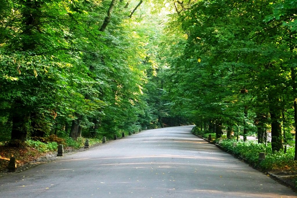 Главная аллея изгибается, повторяя рельеф местности. Идем по алле в тени деревьев, стоящих сплошной стеной особенно с западной стороны.