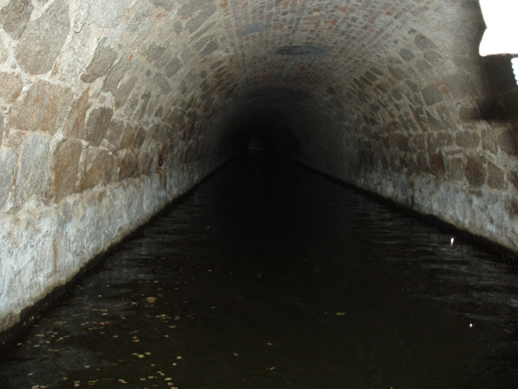 Свет  фонаря выхватывает из тьмы стены из крупных каменных  блоков столетнего сооружения.