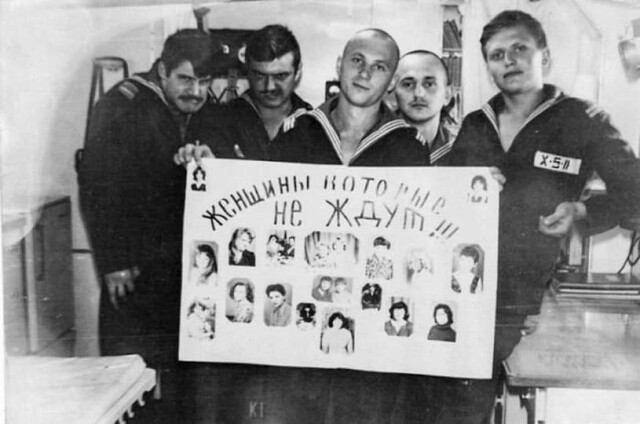 Старые фото. Доска позора, ВМФ СССР, 1980-е годы. Как-то не очень по мужски смотрится эта выставленная напоказ нелюбовь. Может не за что, таких и любить было? Может служба в вооруженных силах СССР и была их единственным достижением и единственным поступком похожим на мужской? В общем, пацаны доказали, что они ещё хуже девок которые их не дождались...