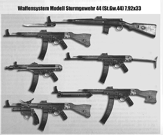 Судя по этой коллекции концептов, после отъезда умирающего Хуго Шмайссера из СССР, деревенскому комсомольцу Калашникову достались чертежи не всех моделей Sturmgewehr 44. Достанься ему полный комплект, и он обеспечил бы себе вселенскую славу оружейного гения! Помните как в фильме "Парфюмер" ремесленник отпустил гения-подмастерье с условием что тот оставит ему рецепты нескольких дюжин ароматов. Но Калашникову впрочем хватило и одного комплекта чертежей чтобы стать знаменитым.... Практически сразу по приезду в Германию Хуго Шмайссер подозрительно быстро умирает. Никто не знает в котором году стали производить "новичок"...?