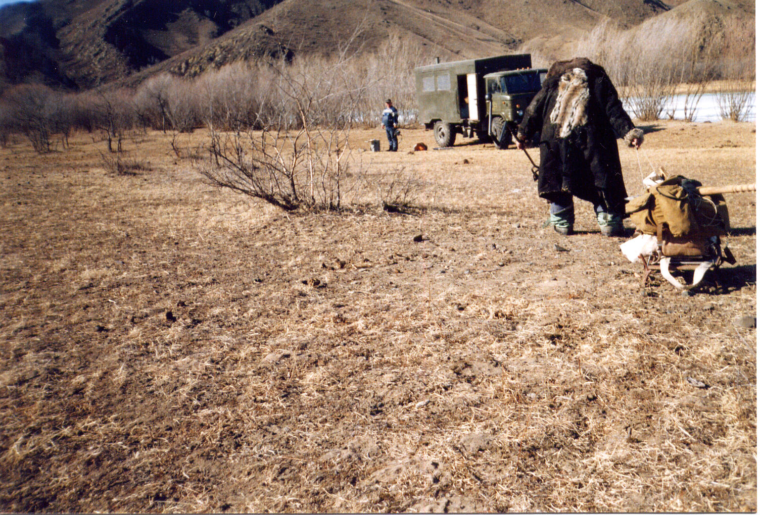 Погода тем временем изменилась буквально на глазах. Жаркое монгольское солнце пригревало не на шутку - на льду мы сидели уже в рубашках. Снег, лежавший на льду и в ложбинах по берегам, начал быстро таять и мутные потоки воды быстро стали заполнять поверхность льда. Собрав имущество и рыбу мы с Л. поднялись на довольно крутой, но не высокий берег и сразу поняли, насколько вовремя мы ушли со льда – сверху нам навстречу уже с шумом двигался сплошной поток талой воды. Надо возвращаться. Рыбы в рюкзаке не центнер, куртку в рюкзак, идти можно. Кинув на плечо бур и пешню я собрался трогать к машине и повернулся к Л. И тут я понял кто из нас был прав – снега уже не было совсем, под ногами голая земля с обглоданными скотом до корешков остатками травы… Впереди у моего напарника было пять километров с гружёными барахлом железными санками по сухой земле, в ватных штанах, да ещё в резиновых бахилах химзащиты, надетых на валенки с толстыми носками. Л. сначала снял и положил свой меченый тулупчик на санки, потом снова одел, потом опять снял, потом опять одел, а до машины ещё было ой как не близко. Я в берцах уже дошёл до нашего кунга, оставил вещи, вернулся к Л., предложил ему помощь, но он твёрдо сказал: "Это моя рыбалка. Я сам". И уже не видя ничего из-за заливавшего глаза пота добавил: "Вот уже легче пошло, наверное, второе дыхание". Я не стал его разочаровывать – под санками был подтаявший сверху, намёрзший с зимы навоз.