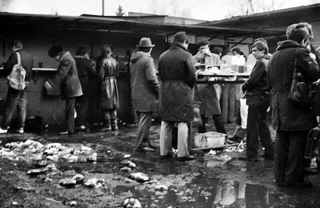 Старые фото. У пивного ларька. Почему все любители СССР в первую очередь вспоминают колбасу по 2.20 и вкусный пломбир. Почему все забыли о вкусном пиве? Это же такое удовольствие было постоять или посидеть в большом коллективе грузчиков, младших научных сотрудников и слесарей высшего разряда... Умная беседа, свежая таранька и не совсем свежая, но вся в золоте продавщица тётя Маша... )))