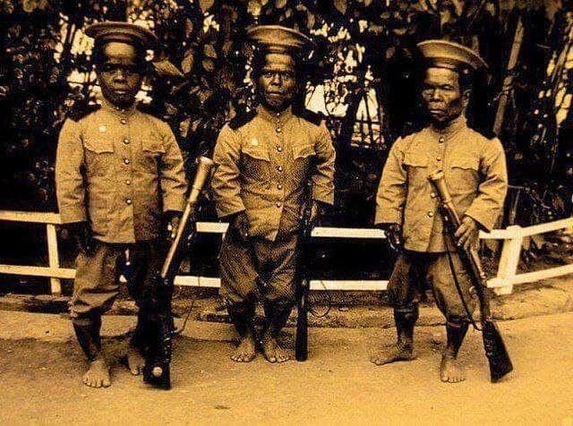 Старые фото. Карлики из личной гвардии короля Сиама. Начало ХХ века. Большинство правителей небольшого роста не терпят рядом с собой высокорослых людей. Это хорошо известно по воспоминаниям о Наполеоне или о Сталине. Тот даже на должности назначал руководствуясь этими параметрами. Да и в современной России правители не лишены этого комплекса. Так и король Сиама будучи сам небольшого роста терпеть не мог людей выше себя. Нормальным людям приходилось перемещаться рядом с ним почти ползком. С гордо поднятой головой ходили только его гвардейцы...