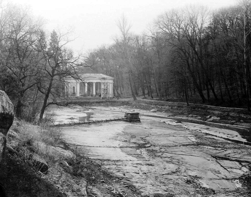 Нижний пруд опустел. Обнажилось дно. Тяжелейшая бронзовая статуя «Змеи» была отброшена на несколько сотен метров.