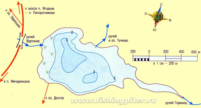 Проточное. С запада в него впадает небольшой ручеек Вертинок, а вытекает узкий (3 м) ручей Горюнец.