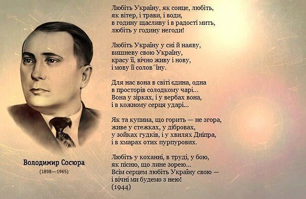 В Советском Союзе можно было горячо любить любую республику - Узбекистан, Таджикистан, Киргизию и далее по списку. Исключение делали только для одной республики, Украины. Любовь к Украине в идеологическом отделе ЦК автоматически считалась фашизмом, нацизмом, экстремизмом и контрреволюцией. За писателями этническими украинцами был особый присмотр, и что другим обычно сходило с рук, то для украинцев считалось преступлением. Можно вспомнить хотя бы суд над Зощенко и Ахматовой (девичья фамилия Горенко). А 2 июля 1951 года в газете «Правда» вышла разгромная статья «Против идеологических извращений в литературе», посвящённая, стихотворению украинского поэта Владимира Сосюры «Любить Украину!». В публикации главного органа советского рейха за сие произведение лирика обвинили в «буржуазном национализме». Сам 53-летний В. Сосюра ожидал, что его, вообще арестуют и отправят в концлагерь, как это двумя годами ранее случилось с его женой. Хотя в словах, написанных уроженцем печально известного ныне Дебальцево ещё в 1944 году, ничего «криминального» и «антисоветского» и в помине не было. Просто – лирическое объяснение в любви к Родине. Но, видимо, само словосочетание «любить Украину» у руководства СССР вызывало лютую ненависть. Впрочем, стихотворение «Любить Украину!» не было окончательно запрещено, хотя советская цензура над ним и «поработала». Так, из вирша вымарали слова: «Без неї — ніщо ми, як порох і дим». А в строчке: „Вона у квітці, й пташині, в кривеньких тинах…“ последние два тёплых слова заменили на одно холодно - производственное «в електровогнях». А ещё говорят: «Из песни слов не выкинешь!», ещё как выкинешь… Кстати, стихотворение Владимира Сосюры «Любить Украину!», положенное на музыку, действительно стало песней.