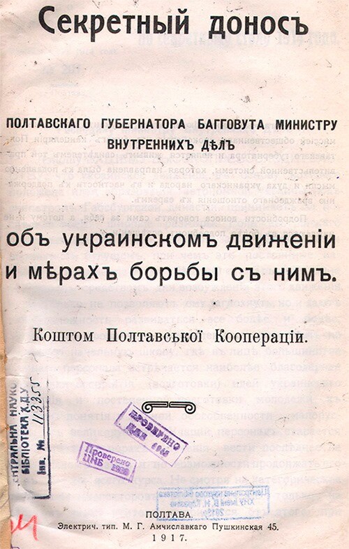 Автор - полтавский губернатор Александр Карлович фон Багговут (1861 — после 1917).