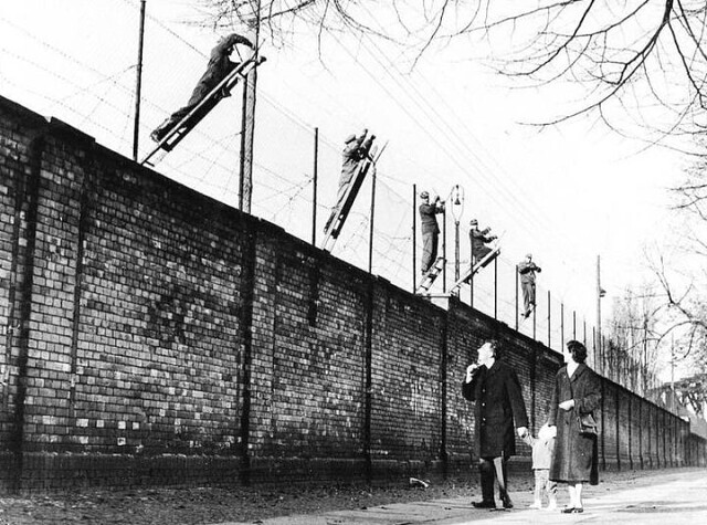 Старые фото. 1961 год. Жители Западного Берлина с недоумением смотрят как солдаты ГДР увеличивают высоту забора с помощью колючей проволоки. Чтобы глупые немцы не сбежали из коммунистического рая в капиталистический ад. А ведь по меркам СССР население ГДР каталось как сыр в масле! Вспомните что было самым желанным в нищем российском быту? Стенка из ГДР, люстра из ГДР, шмотки, обувь, сервизы...!!! Эту страну хотели сделать витриной социалистического мира. Но грустные восточные немцы смотрели за забор и понимали. То что в социалистическом раю считалось богатством, называлось при капитализме нищетой... И даже не это было главным, главным было то, что восточных немцев из ГДР отучали произносить слово - Свобода....