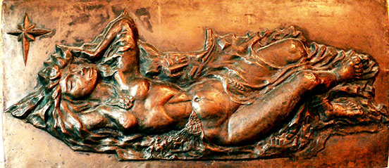 Он сделан по заказу горкома КПСС в качестве подарка от г.Джезказгана на какую-то юбилейную дату, но его не подарили так как Земля была изображена в виде обнаженной женщины. Земля центрального Казахстана - прекрасна, хотя там мало деревьев и трава не такая пышная. Там есть своя неповторимая красота. Чудесные восходы и неповторимые закаты. Особенный воздух, наполненный ароматом полыни и особым запахом земли, орлы, парящие в бескрайнем дневном небе, бездонное ночное небо с мирриадом звезд от края и до края, таких близких, что кажется протяни руку и можешь взять горсть этих звезд, ты будто находишься в открытом космосе, так близок и почти физически ощутим Космос. Земля центрального Казахстана полупустынная географически, она чревата,полна богатств: редких металлов,золота, марганца- почти все элементы таблицы Менделеева есть в ней и мне представилось, что такой образ почти обнаженной женщины - отражает образ жезказганской земли, но такая трактовка образа в то время была слишком смелой. Поэтому барельеф партийные бонзы посчитали невозможным подарить на юбилей и его отвергли, так он остался у меня. Такое было время, и хорошо, что меня не обвинили в нарушении морали и не использовали мою работу против меня, может потому, что эта работа не была обнародована. Я тогда преподавал в Жезказганском университете на кафедре рисунка и живописи, могли приписать какую-нибудь аморалку и выгнать с работы, но мне почему то предложили возглавить художественные мастерские филиала Карагандинского художественного фонда. В университете мне предложили возглавить кафедру рисунка и живописи и я выбрал кафедру.