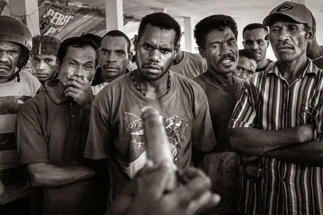Старые фото. 2009 год. Джаяпура, столица провинции Папуа, Индонезия. Местным жителям показывают, как пользоваться презервативом. После двадцатиминутной лекции, кто-то из мужчин сказал: